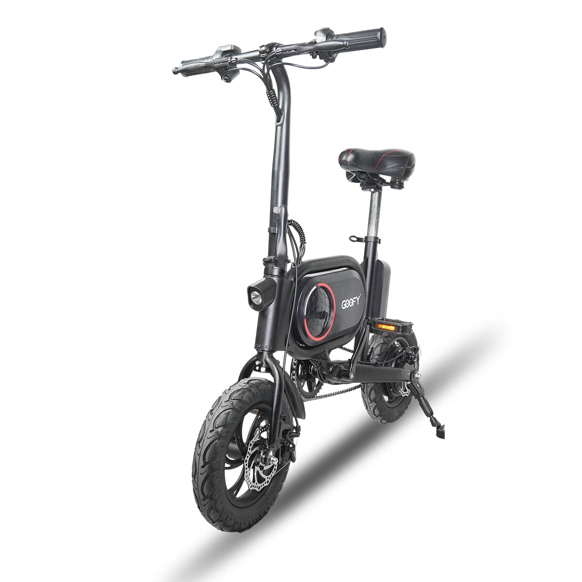 With a long-range 7.5 AH battery and 350W motor, bring the long-range and climbing ability, and a portable folding structure, the GOOFY Butler e-bike is specially designed to improving the commuting experience for more comfortable and safe. All the geometric design frames, components, and accessories are combined to a simple, elegant, and beautiful e-scooter that is extremely durable and made to look good, work great.